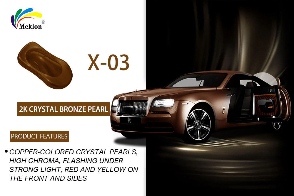 Meklon ProshicheP-X03 Crystal Bronze Pearl é um pigmento de alta qualidade com cor vívida, excelente desempenho, alto poder de ocultação e bom brilho, que pode ser amplamente utilizado em vários campos, como automóvel,construção, móveis, etc.